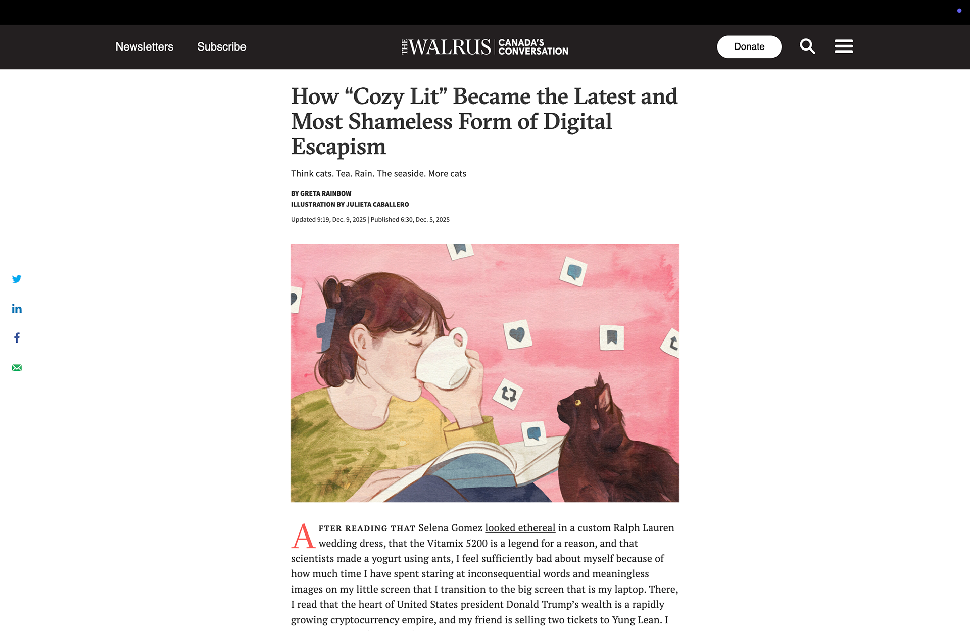 Created for Greta Rainbow's - How “Cozy Lit” Became the Latest and Most Shameless Form of Digital Escapism - published by The Walrus