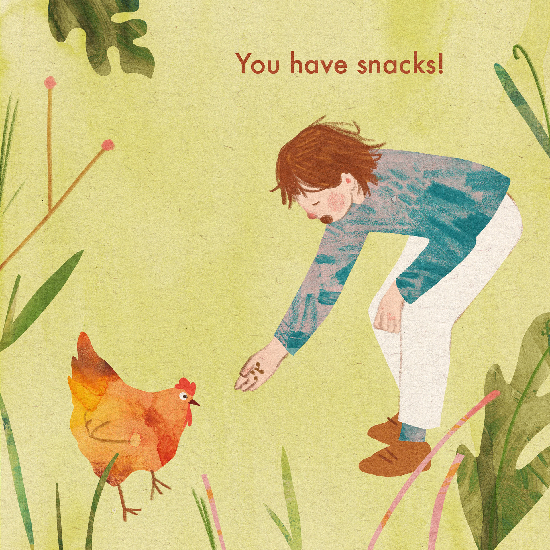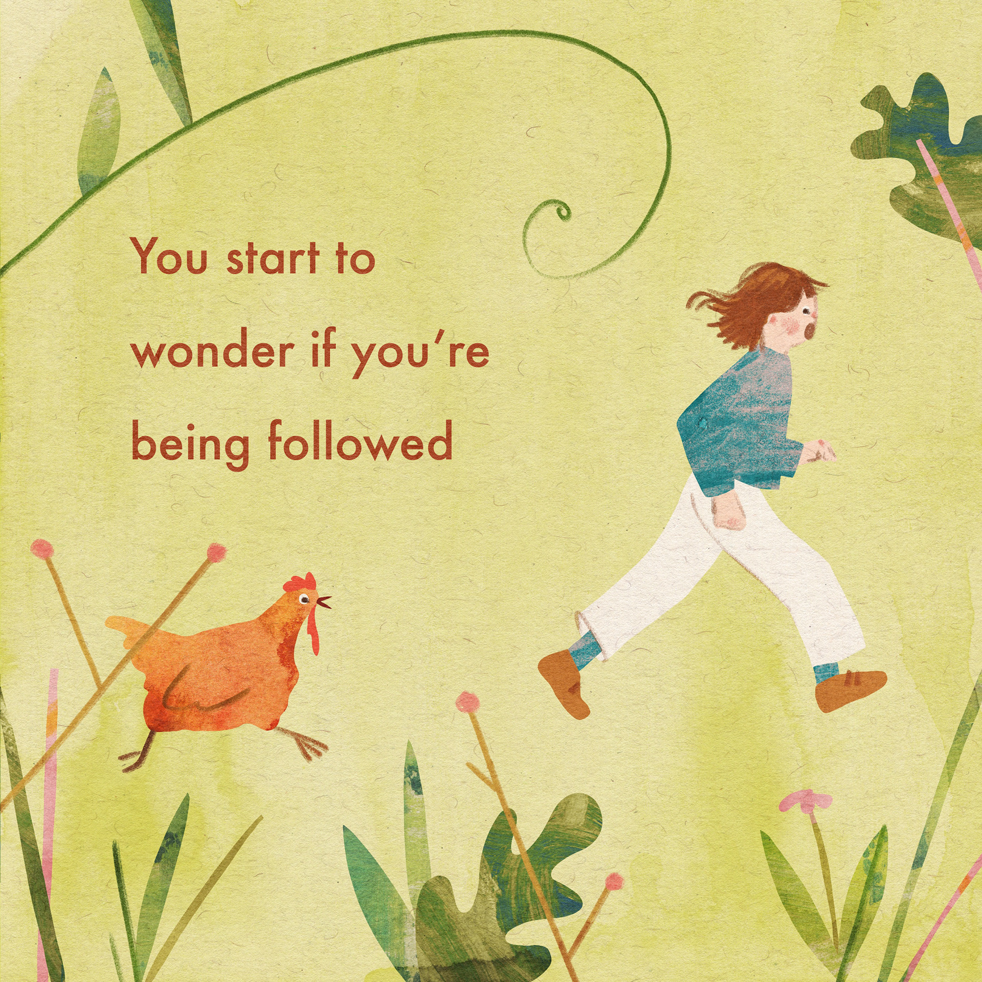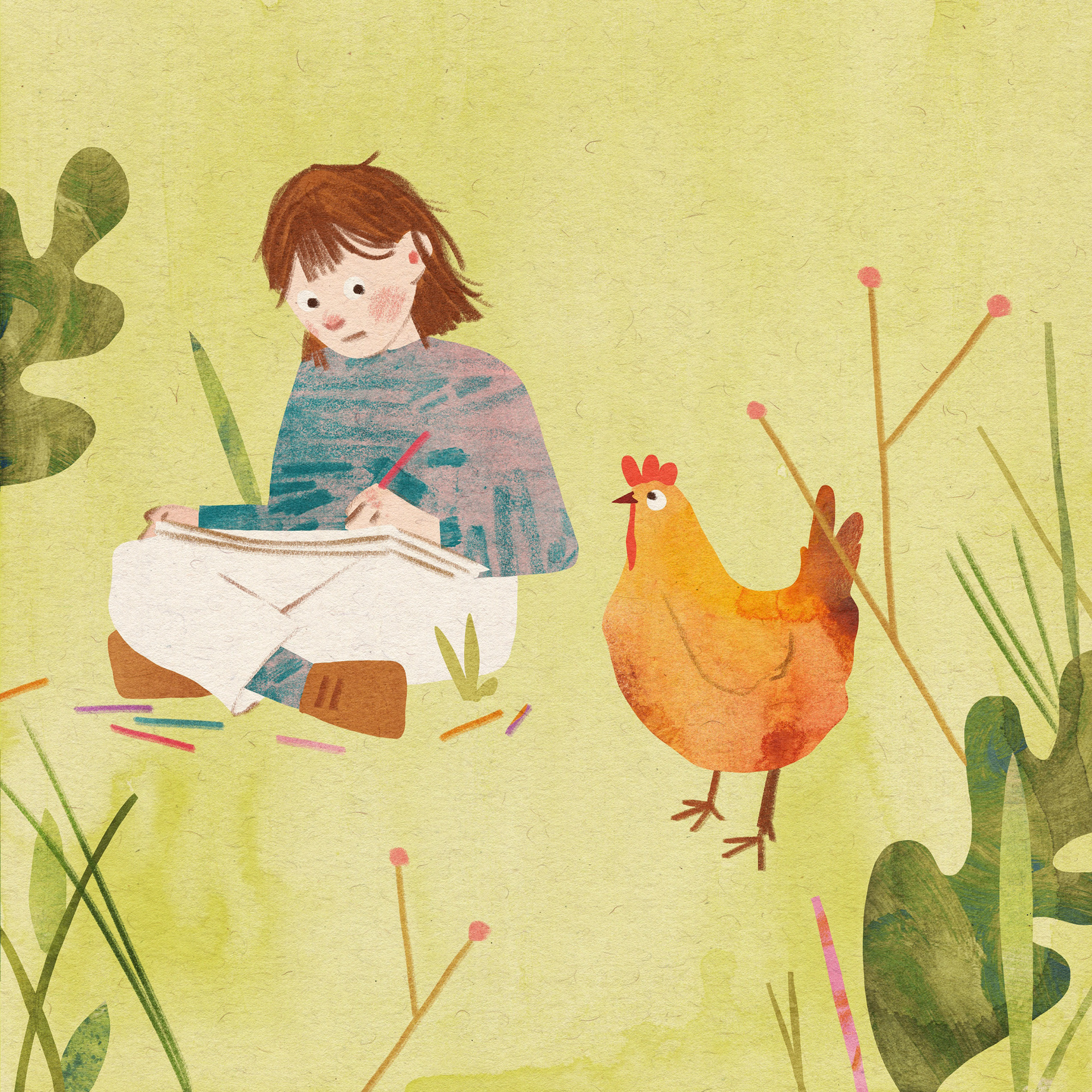 An illustrated story about a girl and her encounter with a chicken